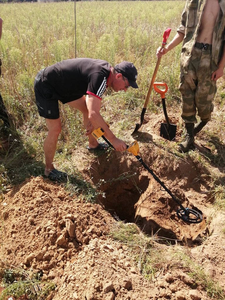 Автор статьи Сергей ЧАЙДАК На протяжении четырех дней бойцы Гомельского областного поискового общественного объединения «Ніколі не забудзем», их коллеги из Брянского регионального общественного движения военно-патриотических и поисковых организаций «Отечество» и представители 52 отдельного специализированного поискового батальона ВС РБ вели работы неподалеку от деревни Марьино. – Август неслучайно выбран для проведения поисковых мероприятий, – поделился председатель объединения «Ніколі не забудзем» Николай Басенков. – 19 августа 1941 года бойцы 1010 стрелкового полка 266 стрелковой дивизии атаковали на марьинских высотах немецкие войска. После кровопролитных боев погибших местные жители хоронили прямо в воронках. Отметим: в минувшем году членами объединения в этом лесном массиве и близлежащем поле были подняты останки 7 бойцов, которых затем с почестями перезахоронили в деревне Марьино. По воспоминаниям выживших в том бою, число погибших исчислялось сотнями. И не всех после Победы перезахоронили в братской могиле. В распоряжении поисковиков – фото немецкой аэроразведки, на котором видны линии окопов и пятна воронок. Привязываемся к современной карте, начинаем отработку участков. Одно из перспективных мест находится в гуще кукурузного поля. Но это поисковиков не останавливает. Спустя некоторое время практически на поверхности обнаруживаются кости черепа. – Видно, воронка была неглубокой, – констатирует факт Николай Басенков. – С годами захоронение разрушалось плугами и иными сельхозагрегатами. Первый боец найден. Его останки аккуратно пакуются и транспортируются в лагерь. Кроме гильз и металлолома в этот день больше ничего не находим. В лагере между тем идет обычная суета: готовится ужин, на костре кипит чайник. В шатре – оживленная дискуссия: составляются планы на следующий день. Свои советы дают российские коллеги Андрей Жижин и Александр Фокин. Они, к слову, не впервые работают на марьинских высотах. С утра все расходятся по различным направлениям. Но день изнуряющих поисков снова оказывается безрезультатным. Николай Басенков принимает волевое решение проверить картофельное поле. Говорит: зарослей сорняков на нем нет и помех для металлодетектора не будет, да и воронки отчетливо видны на архивном снимке. И не промахивается. На небольшой глубине отчетливо проступают останки двух бойцов. Со всей аккуратностью их освобождают от песка, попутно проверяют на наличие оружия, амуниции. На поверхность извлекаются пустой контейнер для пулеметных дисков, подсумки. Работами руководит представитель 52 отдельного специализированного поискового батальона. Это – обычная практика. На месте раскопок часто встречаются не только личные вещи бойцов, но и оружие, боеприпасы. К слову, в эту вахту обошлось без вызова взрывотехников. Ни одна из поднятых вещей не позволяет идентифицировать бойцов. И вдруг, – удача: кто-то обнаруживает бакелитовый смертный медальон без видимых повреждений. Такие находки крайне редки, и относятся к ним поисковики с особым почтением. Его в тот же день отправляют специалистам. – Надеемся, он не окажется пустым, все графы именного листка будут заполнены, – высказывает общую мысль Николай Гулевич. – Факты установления имен погибших можно пересчитать по пальцам. Тем ценнее находка. Закрытие «Вахты 